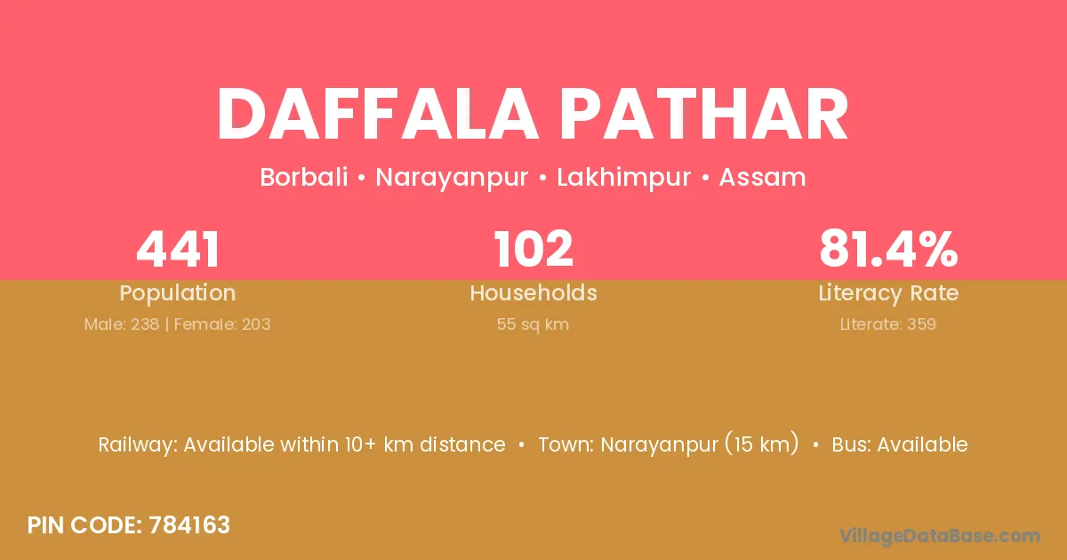 Daffala Pathar village has a total population of 441 people, of which 238 are males and 203 are females.