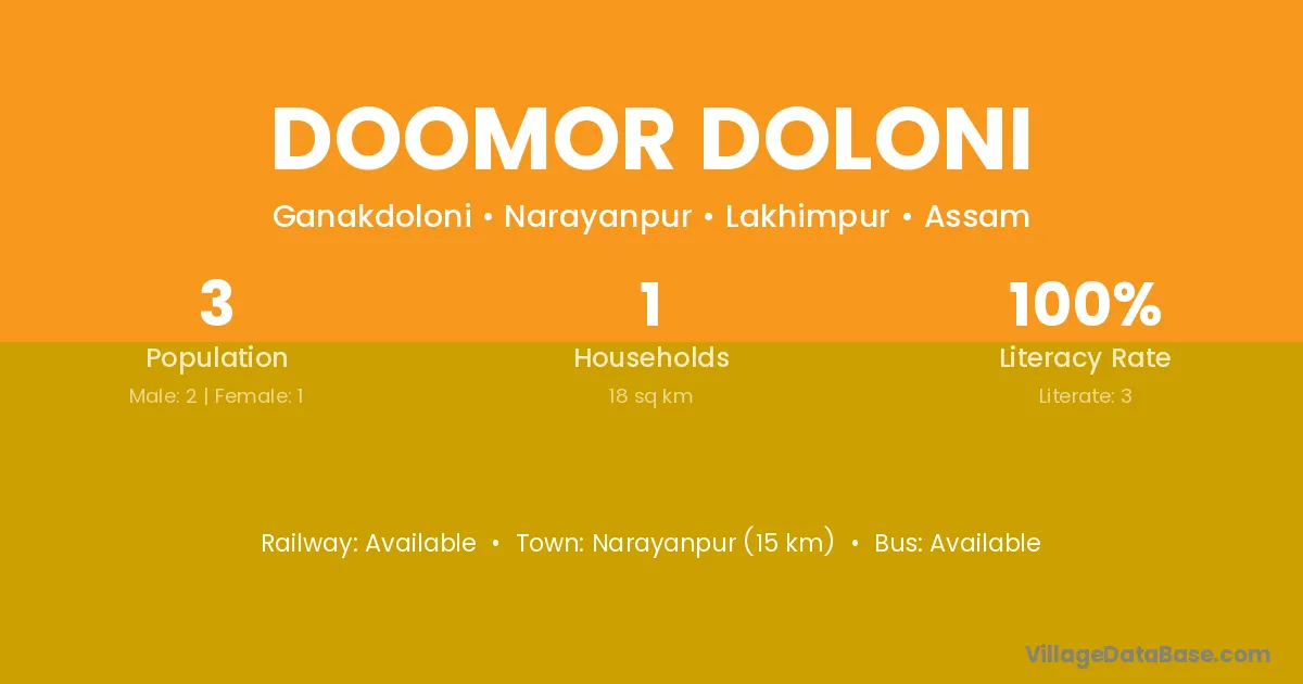Doomor Doloni village has a total population of 3 people, of which 2 are males and 1 are females.