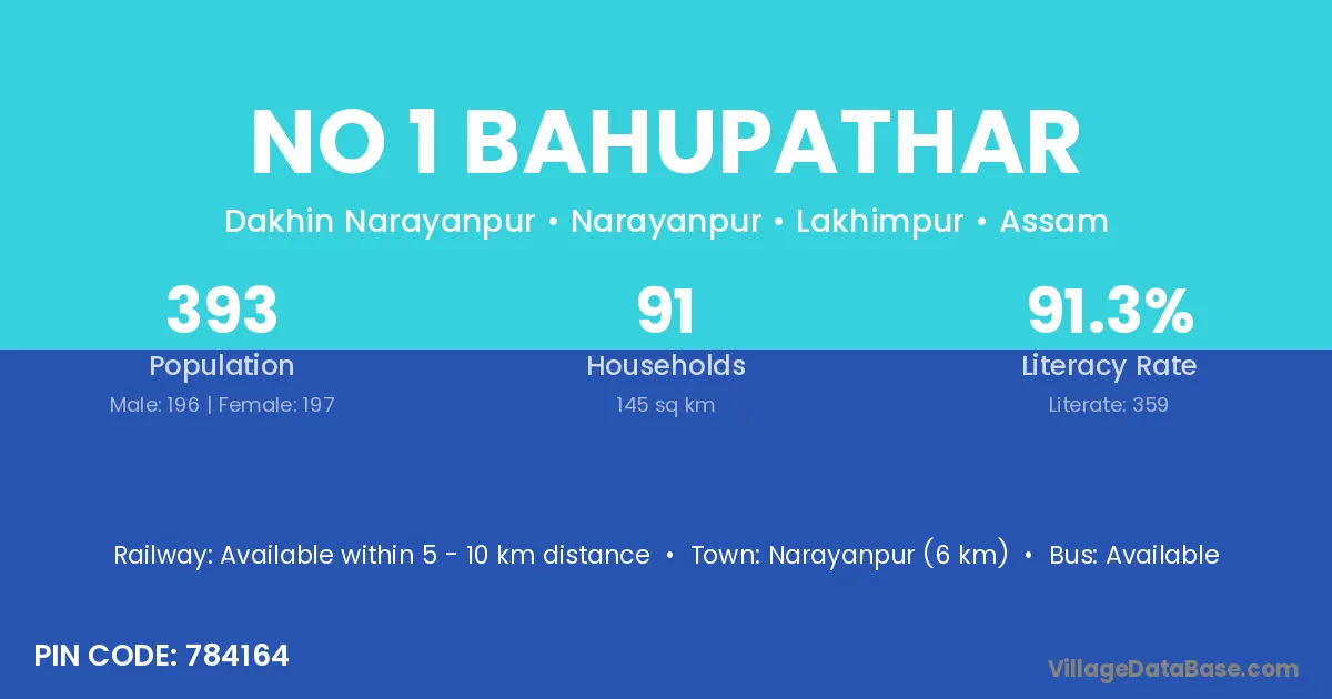 No 1 Bahupathar village has a total population of 393 people, of which 196 are males and 197 are females.