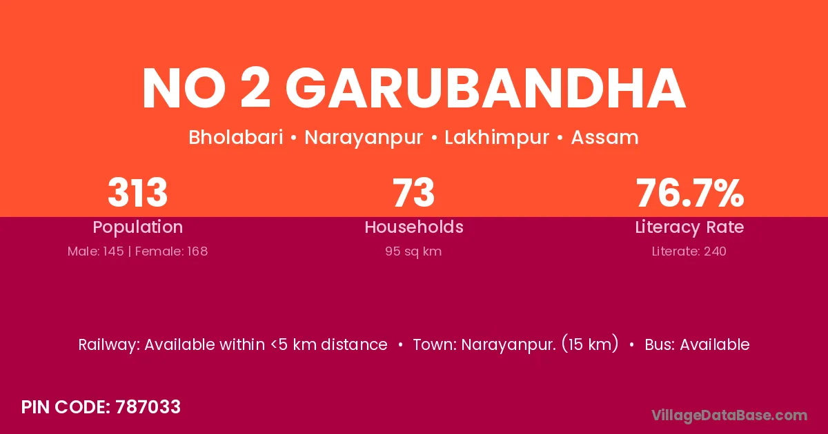 Narayanpur. (15 km) is the nearest town to No 2 Garubandha village for major economic activities and is located approximately 15 km away.