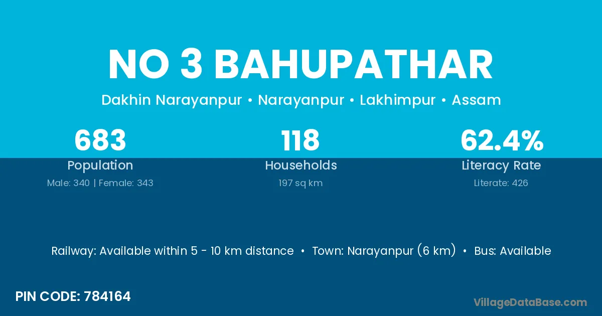 Narayanpur (6 km) is the nearest town to No 3 Bahupathar village for major economic activities and is located approximately 6 km away.
