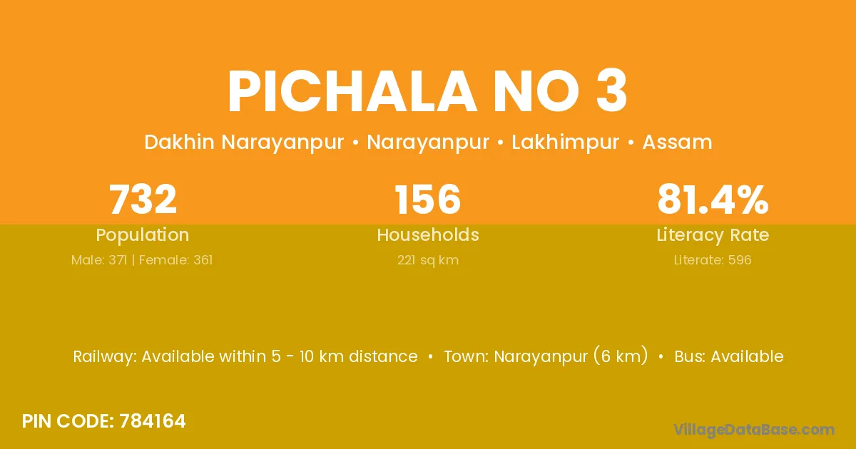 Pichala No 3 village is located in the Narayanpur Subdivision of the Lakhimpur district in Assam .