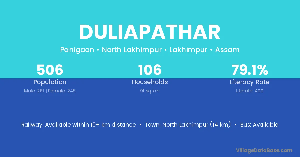 Duliapathar village has a total population of 506 people, of which 261 are males and 245 are females.
