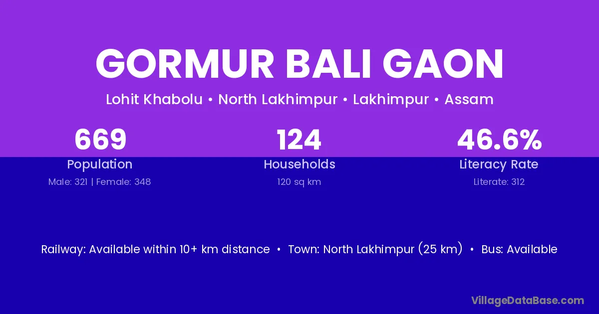 Gormur Bali Gaon village has a total population of 669 people, of which 321 are males and 348 are females.