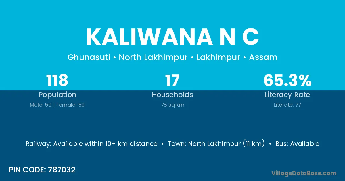 North Lakhimpur (11 km) is the nearest town to Kaliwana N C village for major economic activities and is located approximately 11 km away.