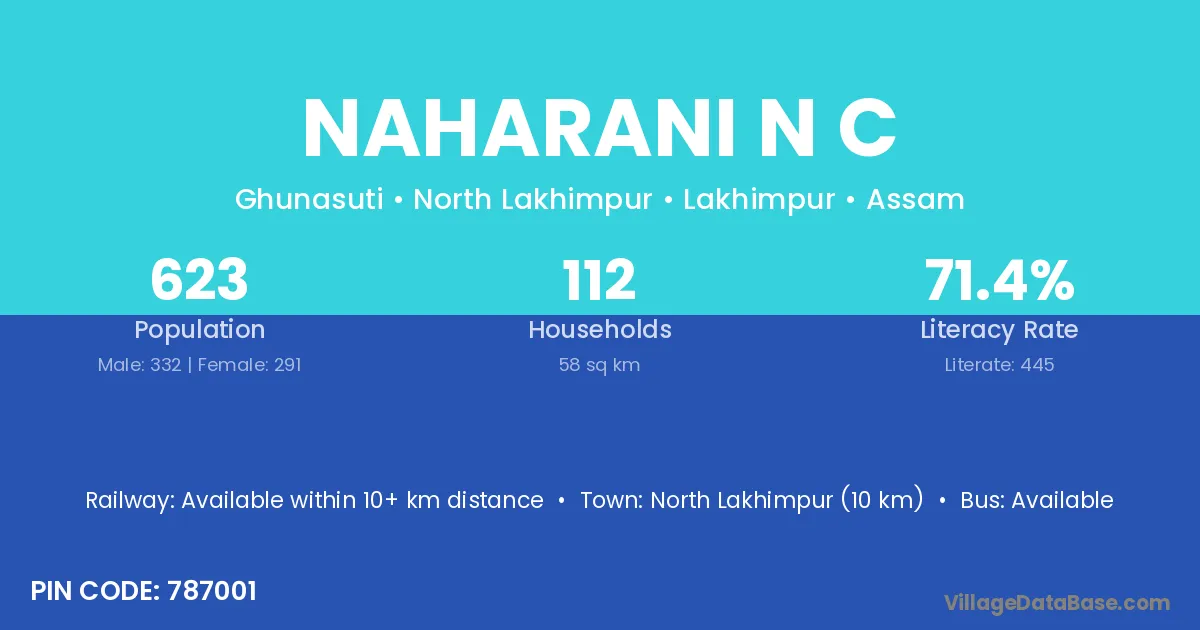 Naharani N C village has a total population of 623 people, of which 332 are males and 291 are females.