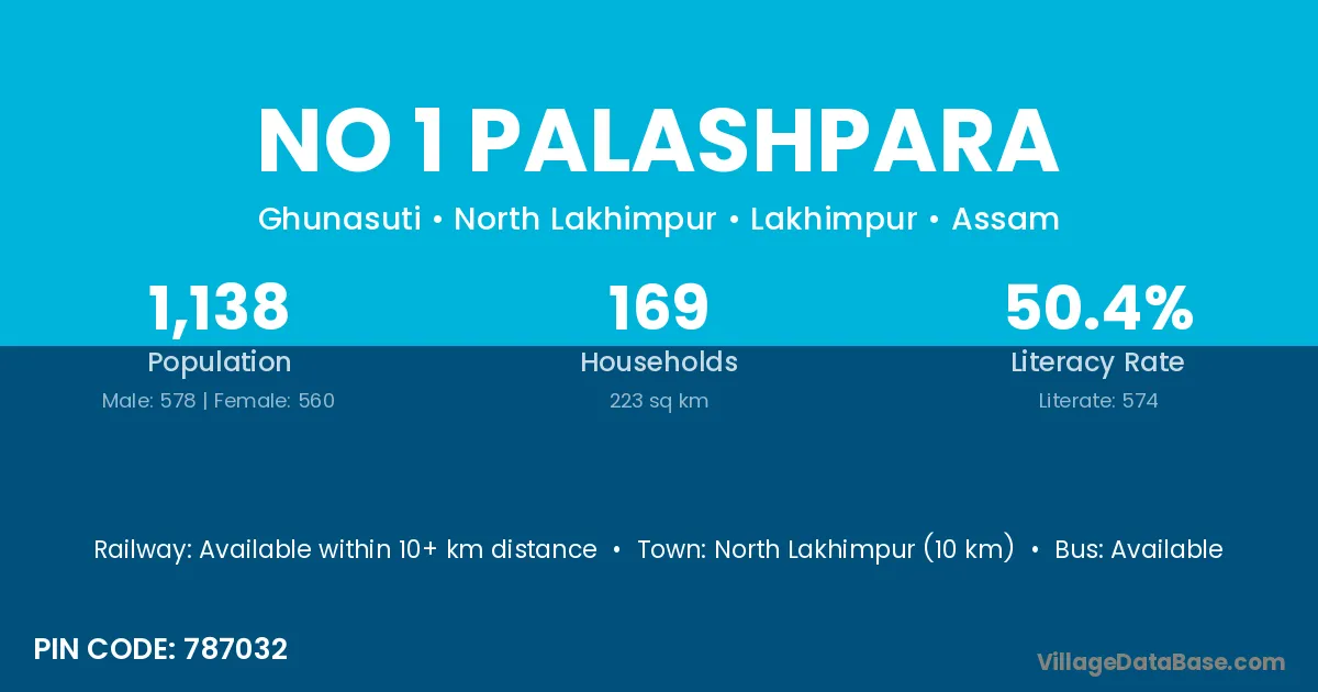 No 1 Palashpara village has a total population of 1,138 people, of which 578 are males and 560 are females.
