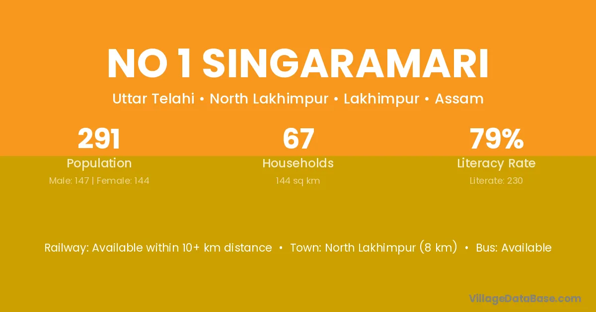 No 1 Singaramari village has a total population of 291 people, of which 147 are males and 144 are females.