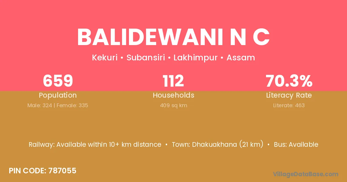 Dhakuakhana (21 km) is the nearest town to Balidewani N C village for major economic activities and is located approximately 21 km away.