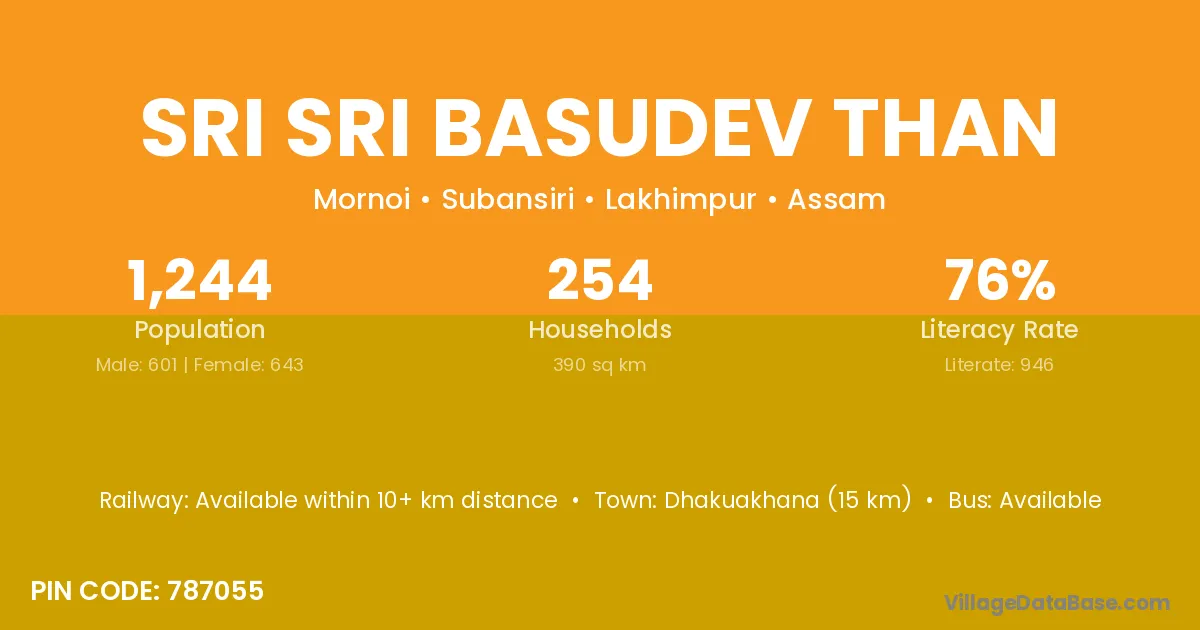 Dhakuakhana (15 km) is the nearest town to Sri Sri Basudev Than village for major economic activities and is located approximately 15 km away.