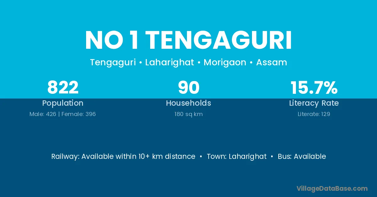 No 1 Tengaguri village has a total population of 822 people, of which 426 are males and 396 are females.