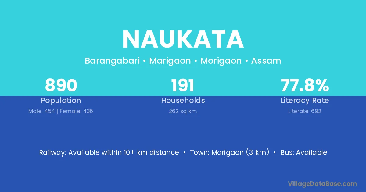 Marigaon (3 km) is the nearest town to Naukata village for major economic activities and is located approximately 3 km away.