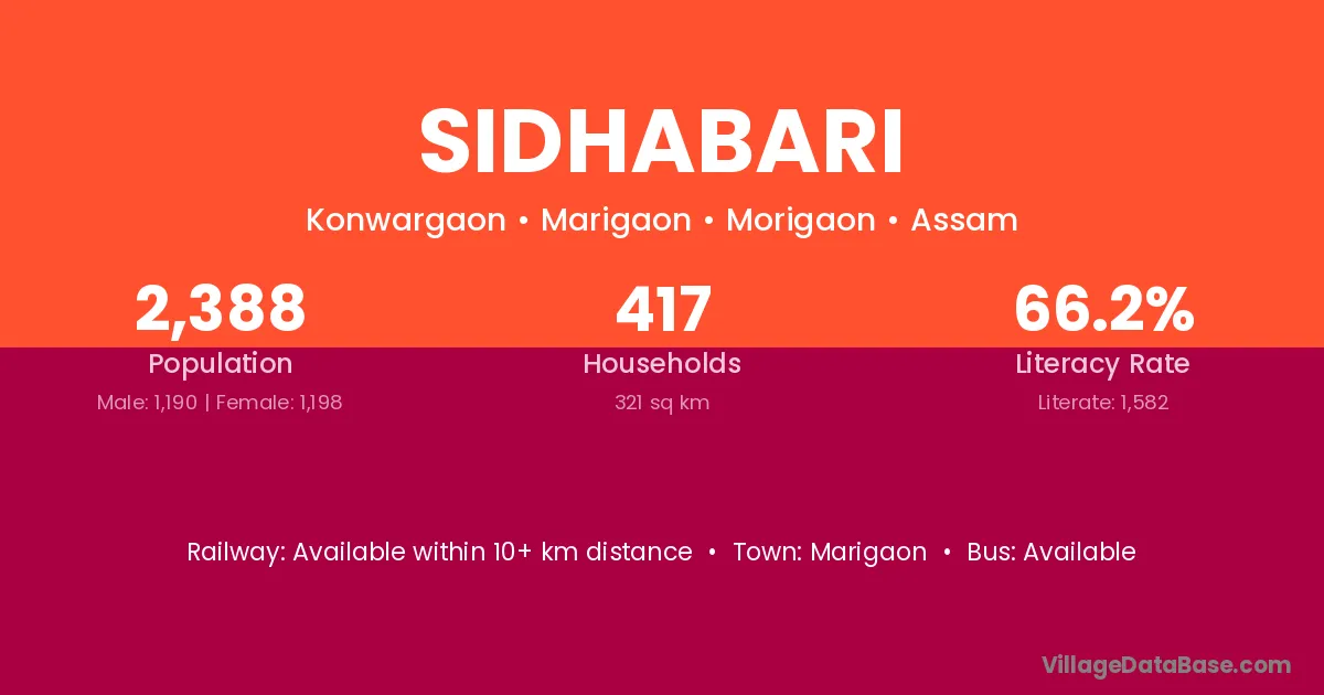 Marigaon is the nearest town to Sidhabari village for major economic activities