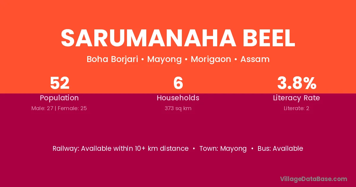 Sarumanaha Beel village has a total population of 52 people, of which 27 are males and 25 are females.