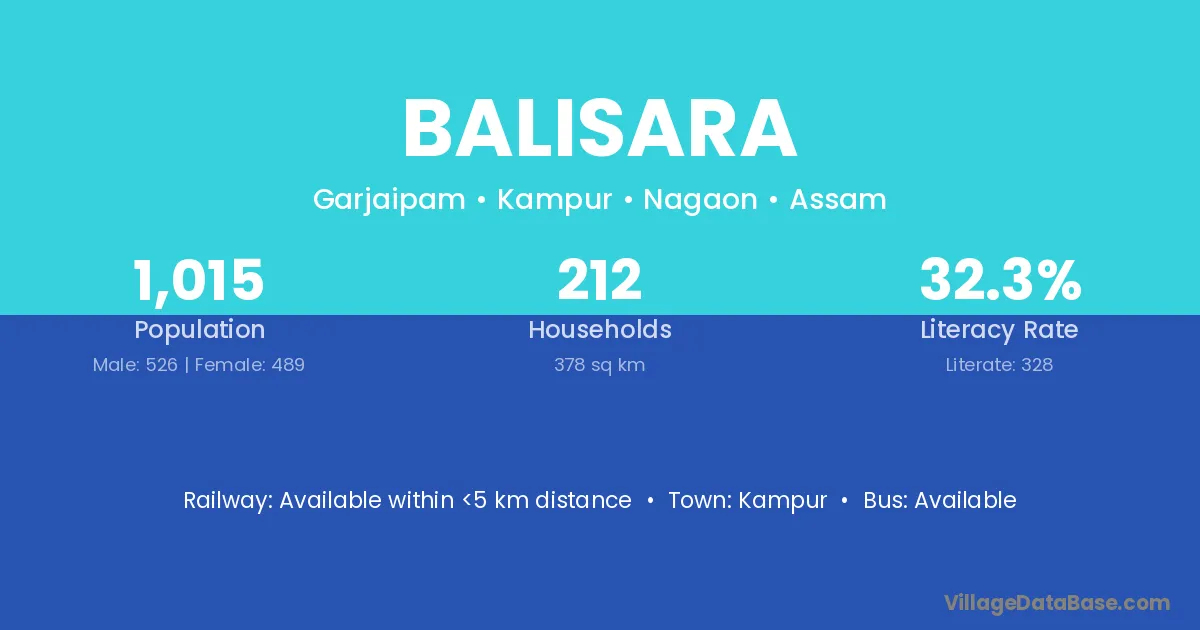 Balisara village has a total population of 1,015 people, of which 526 are males and 489 are females.