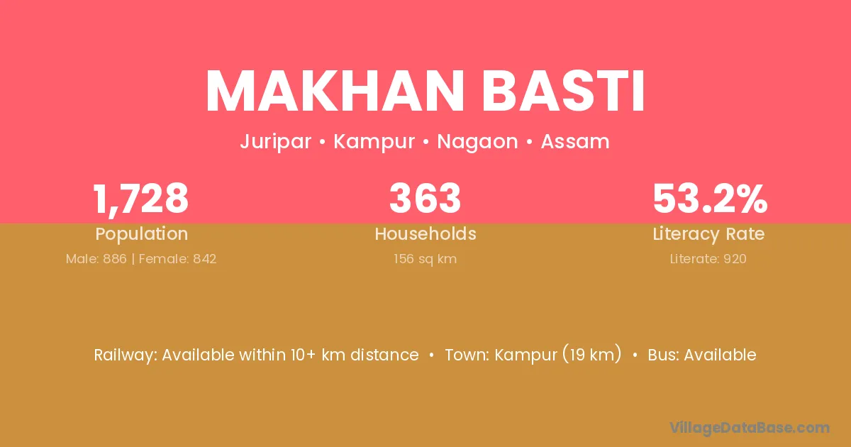 Makhan Basti village has a total population of 1,728 people, of which 886 are males and 842 are females.