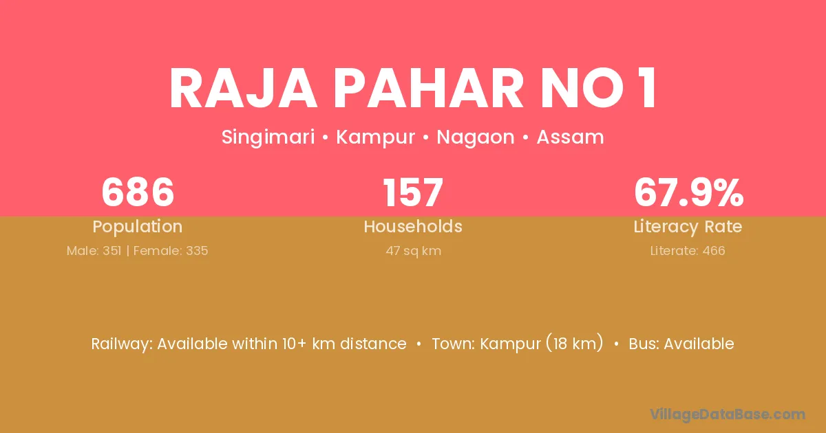 Raja Pahar No 1 village has a total population of 686 people, of which 351 are males and 335 are females.