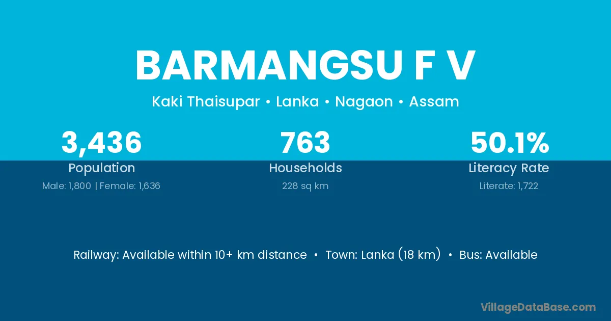 Lanka (18 km) is the nearest town to Barmangsu F V village for major economic activities and is located approximately 18 km away.