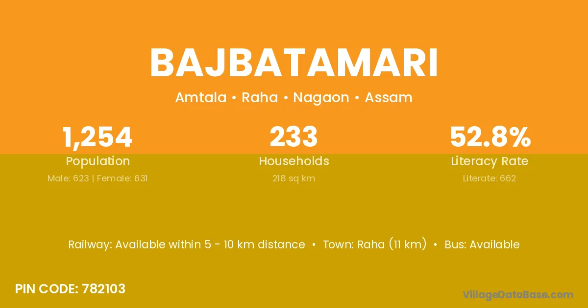 Bajbatamari village has a total population of 1,254 people, of which 623 are males and 631 are females.