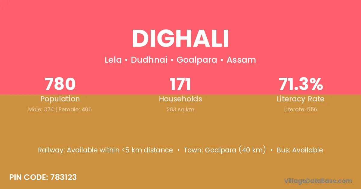 Nagaon (12 km) is the nearest town to Dighali village for major economic activities and is located approximately 12 km away.