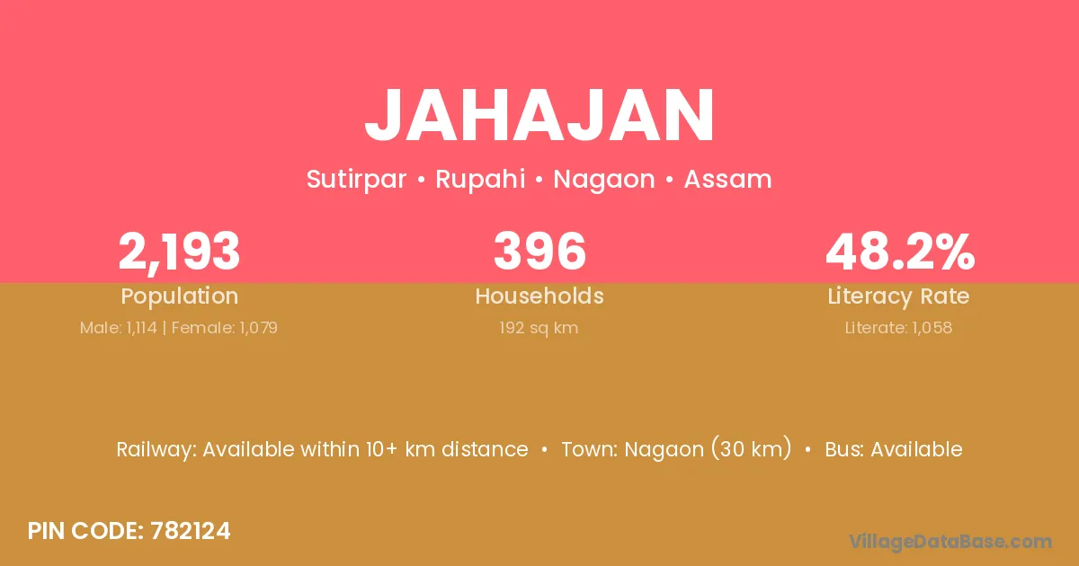 Nagaon (30 km) is the nearest town to Jahajan village for major economic activities and is located approximately 30 km away.