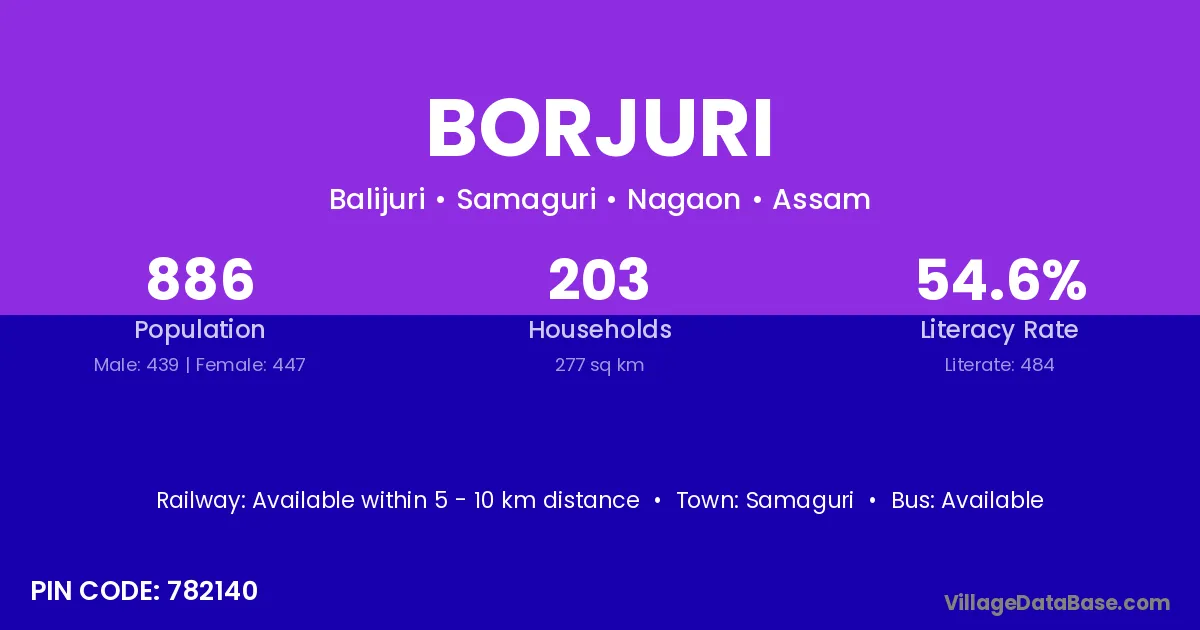 According to Census 2011 information, the village code of Borjuri village is 782140.