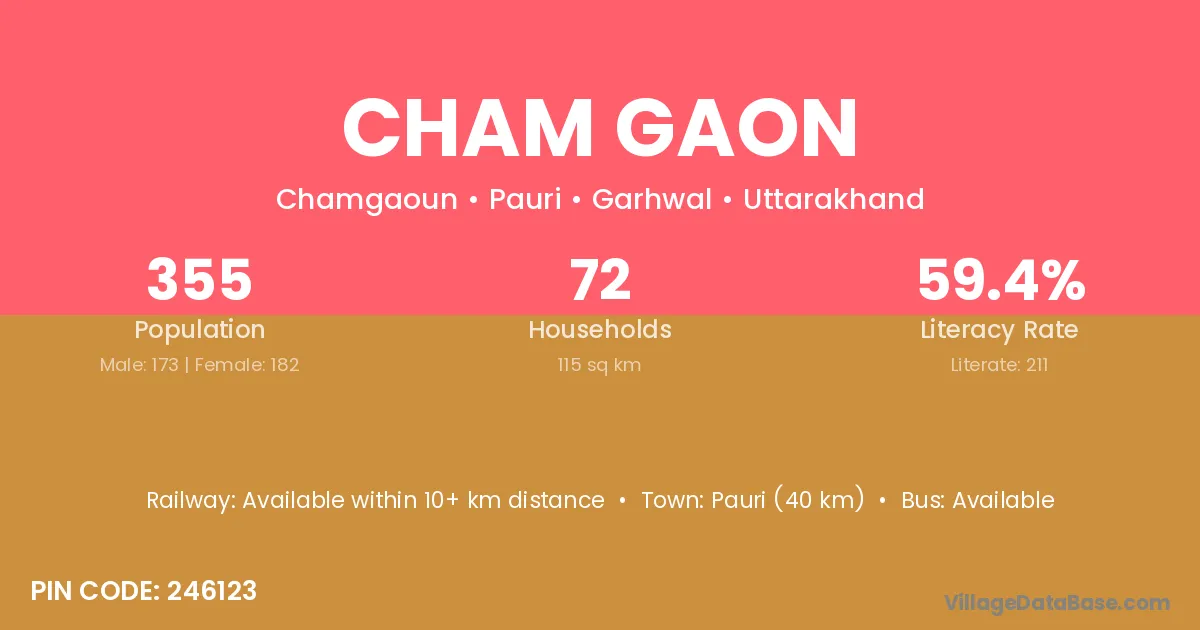 Nagaon (28 km) is the nearest town to Cham Gaon village for major economic activities and is located approximately 28 km away.