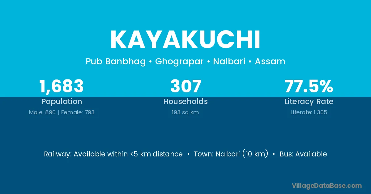 Nalbari (10 km) is the nearest town to Kayakuchi village for major economic activities and is located approximately 10 km away.