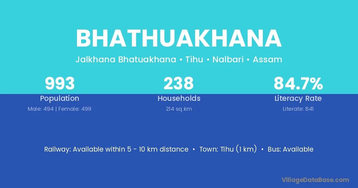 Bhathuakhana village has a total population of 993 people, of which 494 are males and 499 are females.