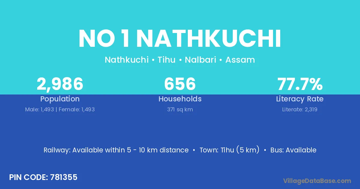 No 1 Nathkuchi village has a total population of 2,986 people, of which 1,493 are males and 1,493 are females.