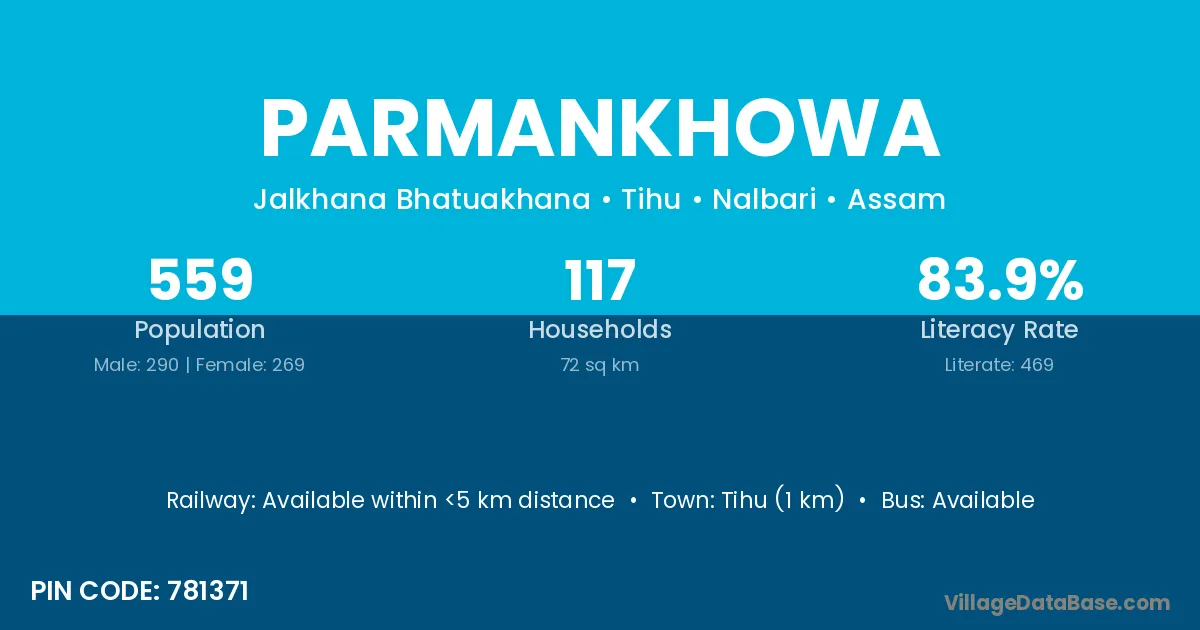 Tihu (1 km) is the nearest town to Parmankhowa village for major economic activities and is located approximately 1 km away.