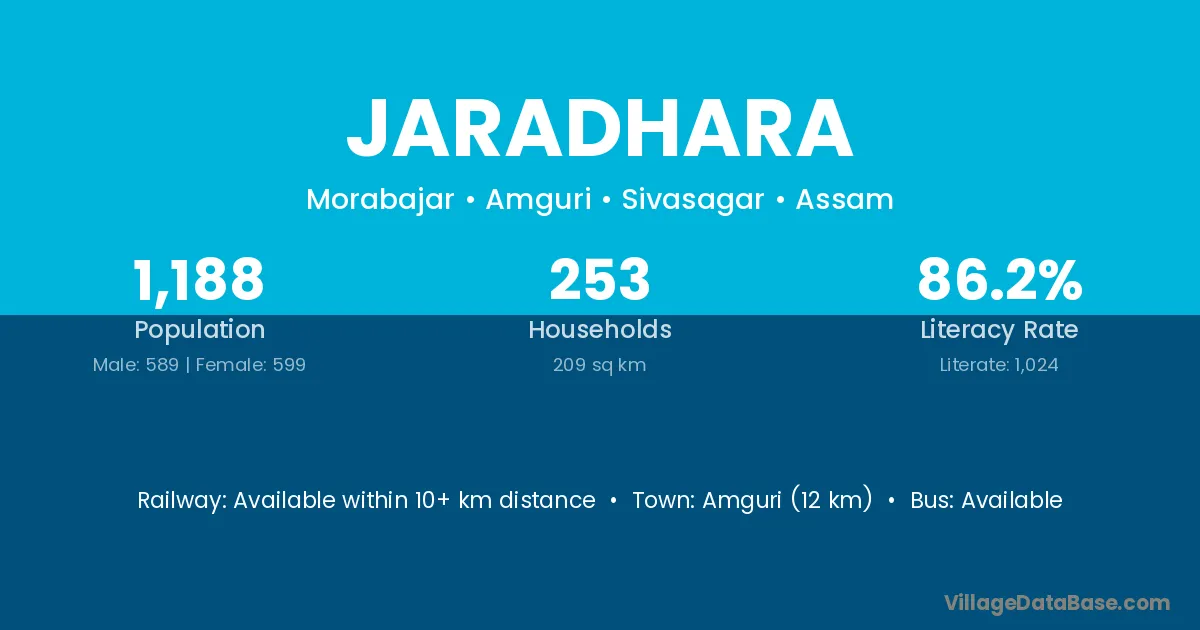 Amguri (12 km) is the nearest town to Jaradhara village for major economic activities and is located approximately 12 km away.