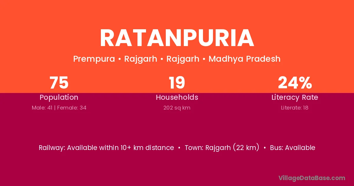 Ratanpuria village has a total population of 1,526 people, of which 748 are males and 778 are females.