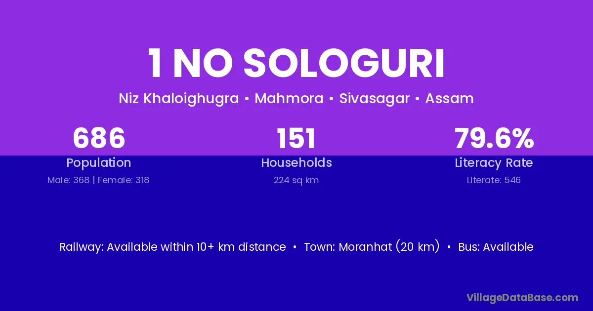 Moranhat (20 km) is the nearest town to 1 No Sologuri village for major economic activities and is located approximately 20 km away.