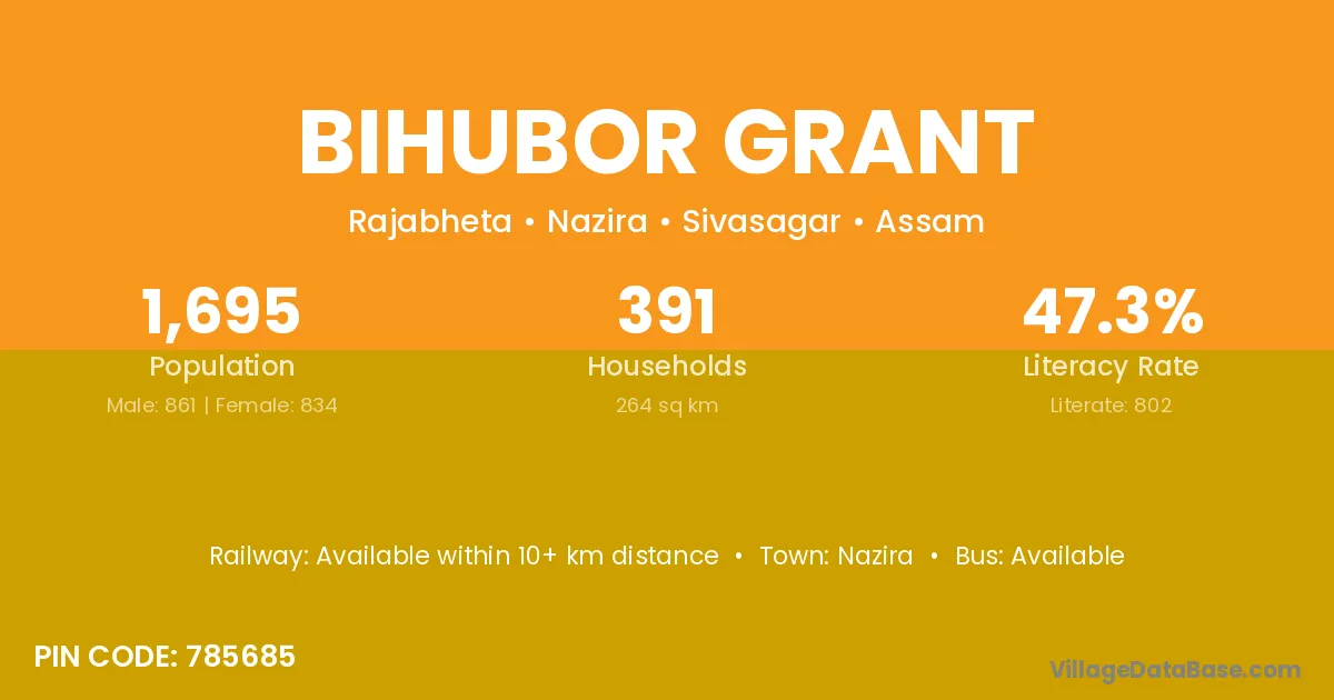 Bihubor Grant village has a total population of 1,695 people, of which 861 are males and 834 are females.