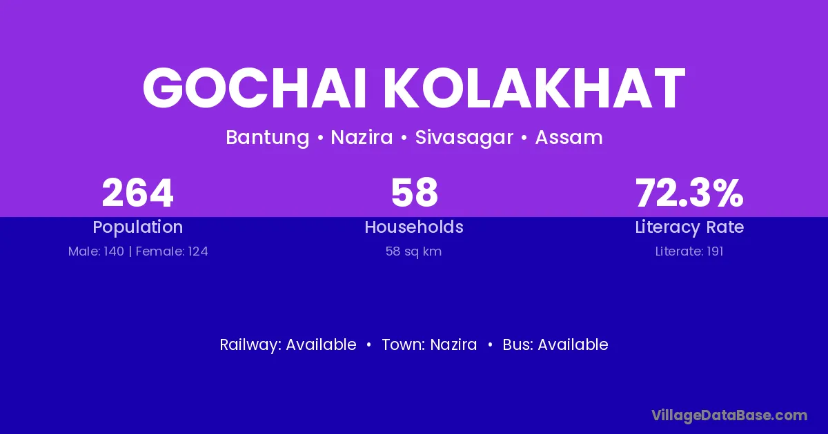 Gochai Kolakhat village has a total population of 264 people, of which 140 are males and 124 are females.