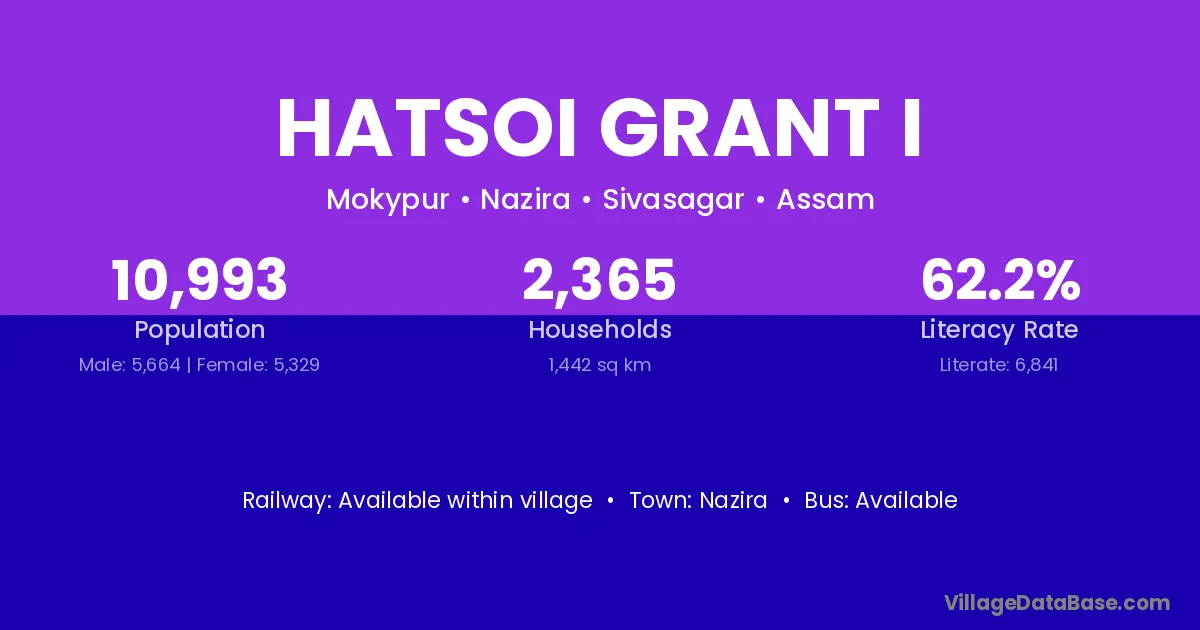 Hatsoi Grant I village has a total population of 10,993 people, of which 5,664 are males and 5,329 are females.