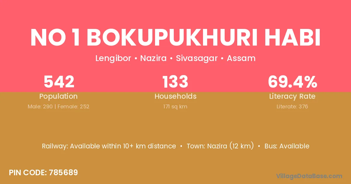 No 1 Bokupukhuri Habi village has a total population of 542 people, of which 290 are males and 252 are females.
