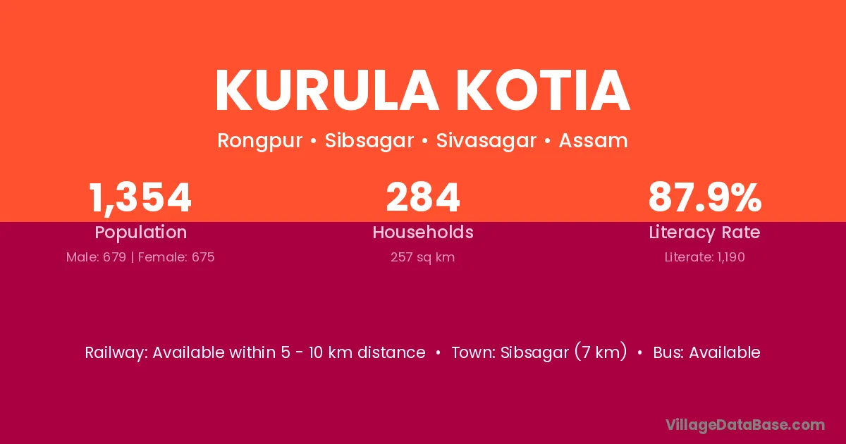 Sibsagar (7 km) is the nearest town to Kurula Kotia village for major economic activities and is located approximately 7 km away.
