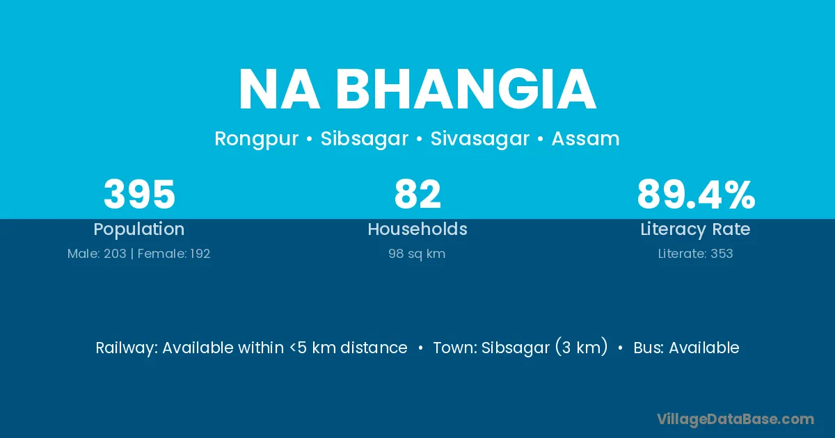 Sibsagar (3 km) is the nearest town to Na Bhangia village for major economic activities and is located approximately 3 km away.