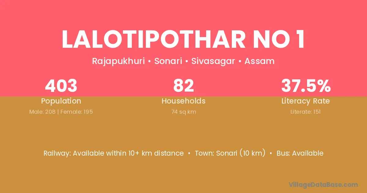 Sonari (10 km) is the nearest town to Lalotipothar No 1 village for major economic activities and is located approximately 10 km away.