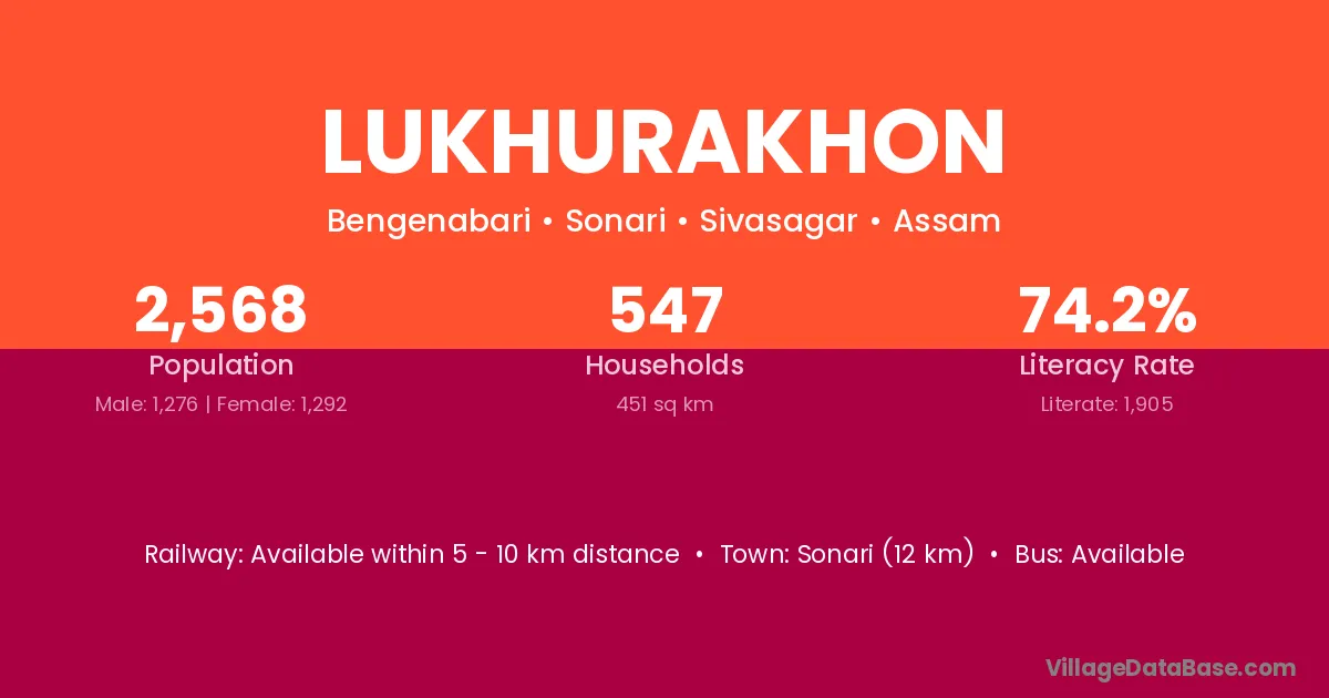Sonari (12 km) is the nearest town to Lukhurakhon village for major economic activities and is located approximately 12 km away.