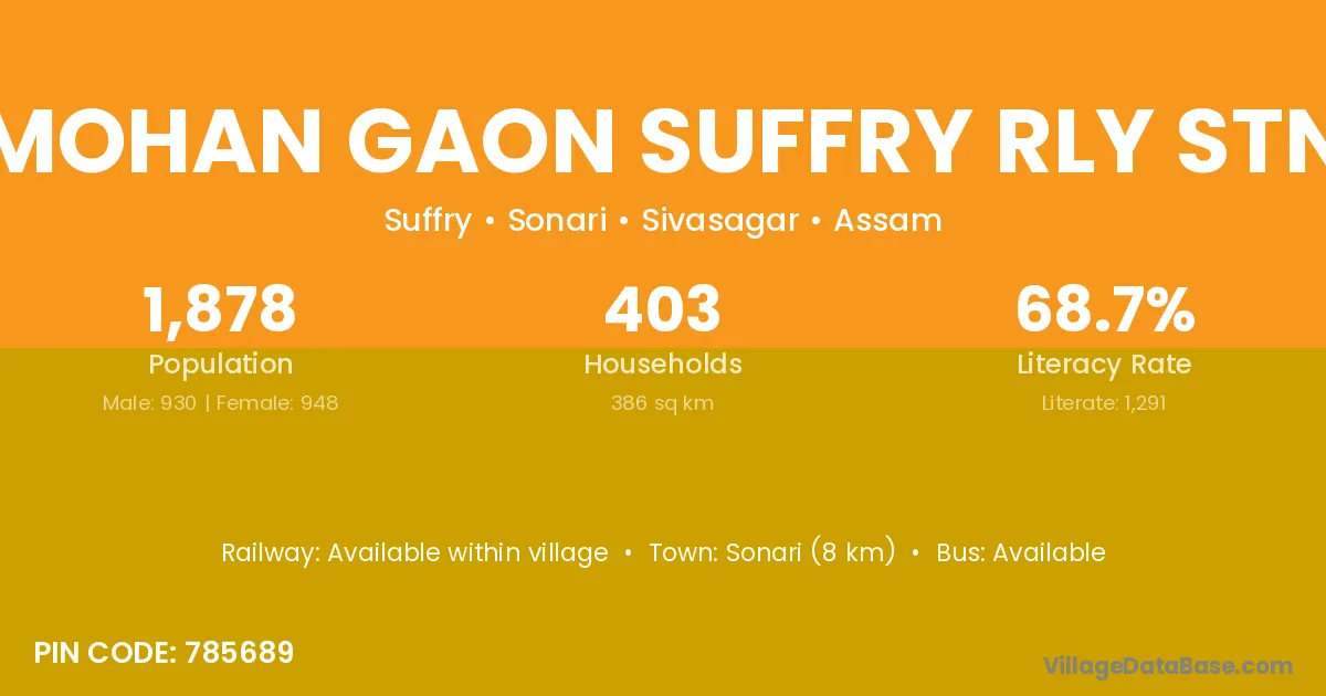 Mohan Gaon Suffry Rly Stn village is located in the Sonari Subdivision of the Sivasagar district in Assam .