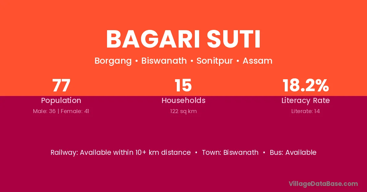 Biswanath is the nearest town to Bagari Suti village for major economic activities