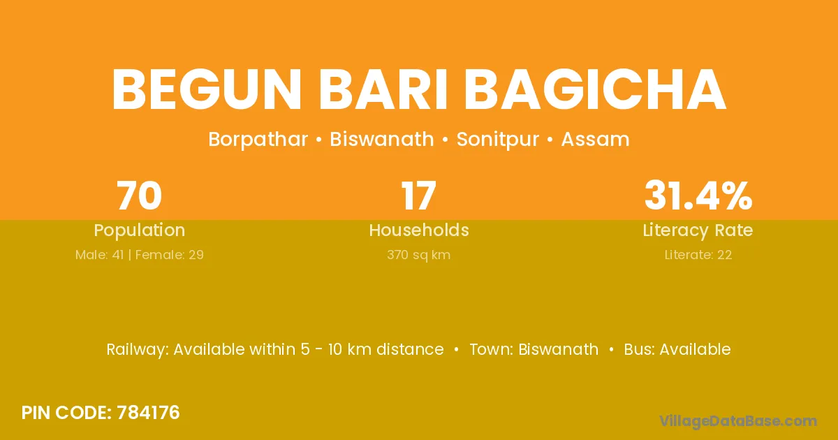 Biswanath is the nearest town to Begun Bari Bagicha village for major economic activities