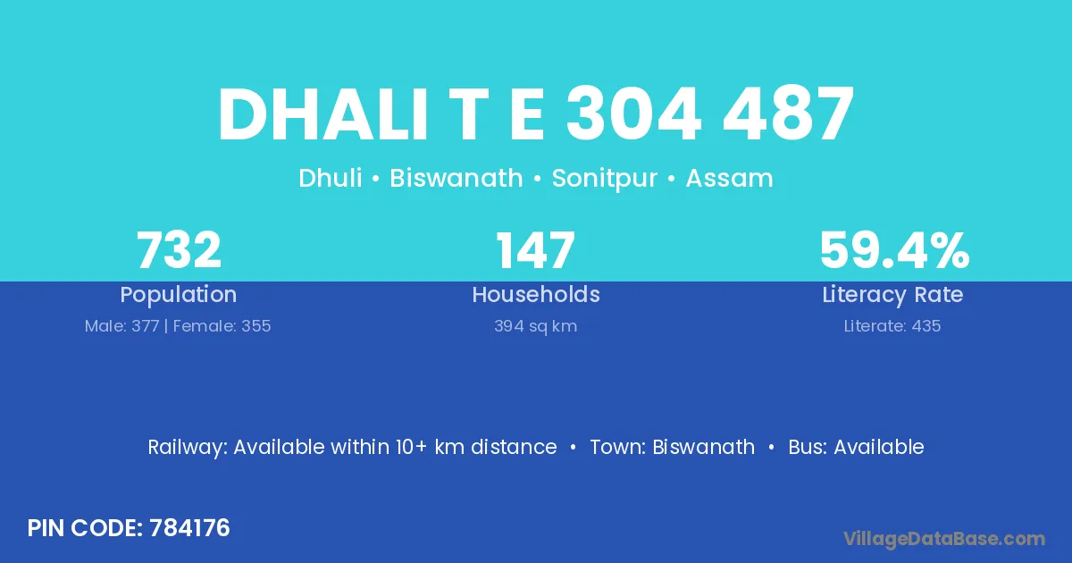Biswanath is the nearest town to Dhali T E 304 487 village for major economic activities