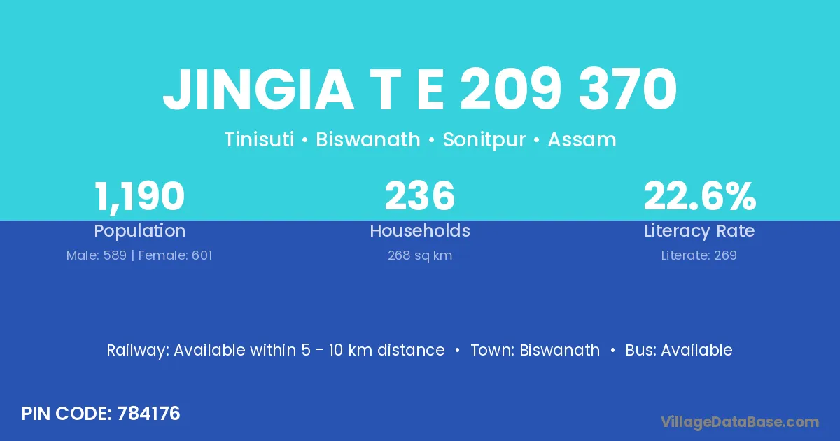 According to Census 2011 information, the village code of Jingia T E 209 370 village is 784176.