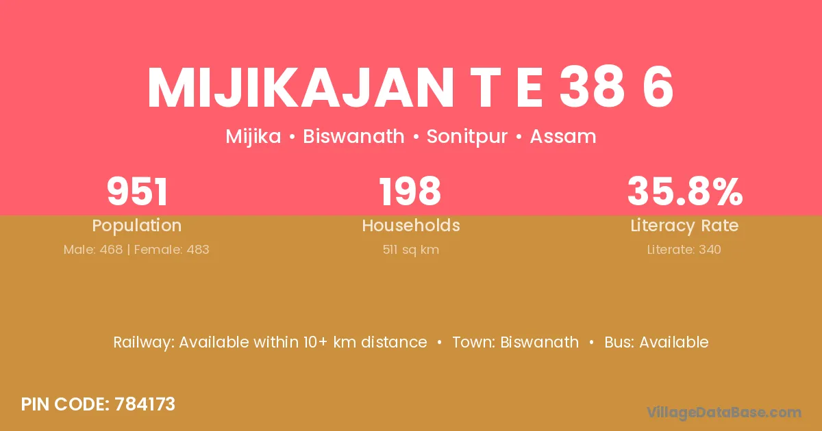 Mijikajan T E 38 6 village has a total population of 951 people, of which 468 are males and 483 are females.