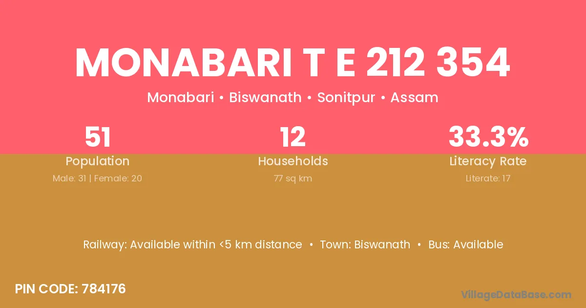 Biswanath is the nearest town to Monabari T E 212 354 village for major economic activities