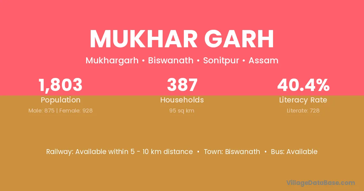 Biswanath is the nearest town to Mukhar Garh village for major economic activities